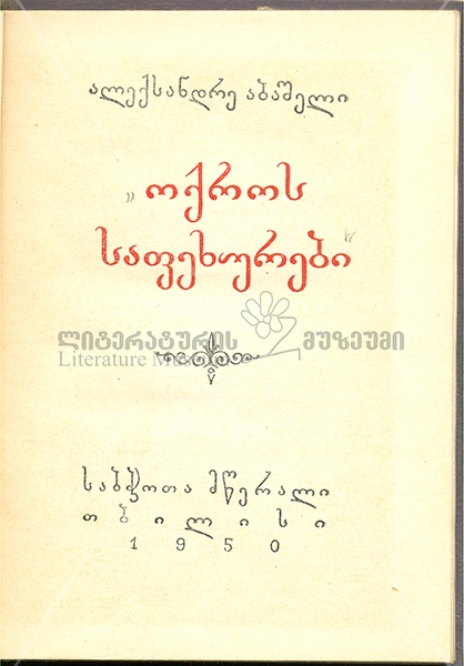 ტ-6. აბაშელი ა. ოქროს საფეხურები, საბჭოთა მწერალი, თბილისი, 1950