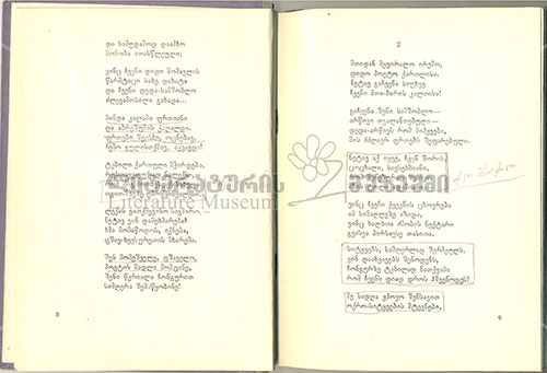 აბაშელი ა. ოქროს საფეხურები, საბჭოთა მწერალი, თბილისი, 1950. გვერდი 8