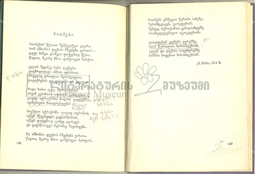 აბაშელი ა., ოქროს საფეხურები, საბჭოთა მწერალი, თბილისი, 1950. გვერდი 108
