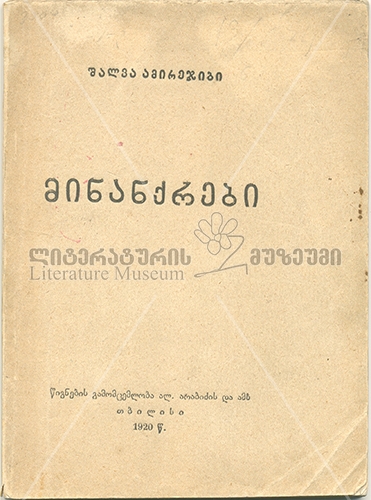 შალვა ამირეჯიბი მინანქრები წიგნის გამომცელობა ალ. აბრამიძის და ამხ. თბილისი 1920წ თავფურცელი