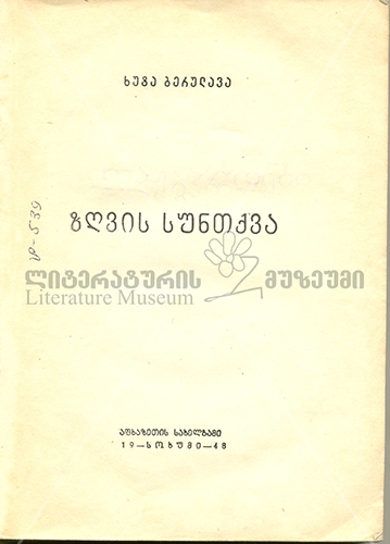 ტ-23. ბერულავა ხუტა, ზღვის სუნთქვა. აფხაზეთის სახელგამი, სოხუმი, 1948 წელი (1)
