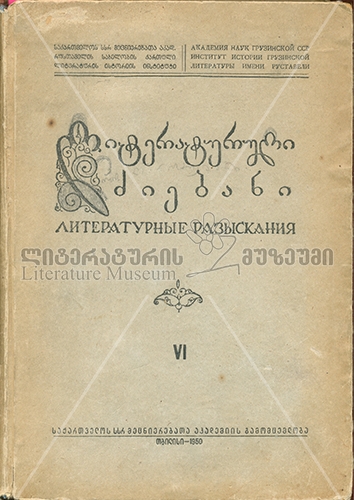 ტ-70. ლიტერატურული ძიებანი, VI საქართველოს სსრ მეცნიერებათა აკადემიის გამომცემლობა, თბილისი, 1950 (1)