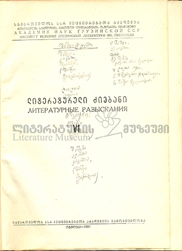 ტ-70. ლიტერატურული ძიებანი, VI საქართველოს სსრ მეცნიერებათა აკადემიის გამომცემლობა, თბილისი, 1950 (2)