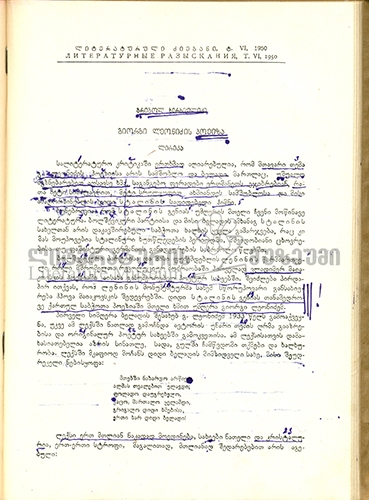 ტ-70. ლიტერატურული ძიებანი, VI საქართველოს სსრ მეცნიერებათა აკადემიის გამომცემლობა, თბილისი, 1950 (5)