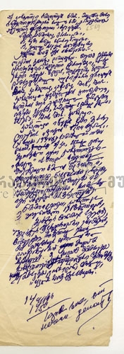 კაჩალოვი იწყებს ჩემი მეორე ლექსის „ფიცის“ კითხვას... (ეს ხდება 1944 წ., სამამულო ომის დროს). [როდესაც] აქ კი, სწორედ განუმეორებელი იყო კაჩალოვი - „ფიცი“ ისმოდა, როგორც მოქნეული ხმლის წკრიალი, დიდებულად წაიკითხა კაჩალოვმა, არ შეიძლება გადმოცემა იმ შთაბეჭდილებისა, რომელსაც იგი ახდენდა მსმენელებზე.