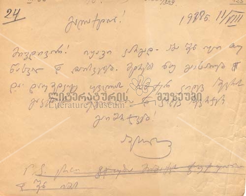 [P. S. ერთი ბლუზა მიმაქვს ჭუჭყიანი და შენ იმას...]