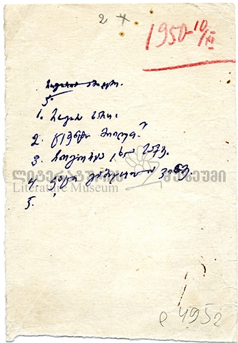 დღიური-495-2 - 1950 წელი 1950. 10/XI.[როგორია ამიდები].1. როგორა ხართ? 2. ცემენტი მიიღეთ? 3. როგორაა ეხლა საქმე? 4. კაცი გამოყოფილია ვინმე?