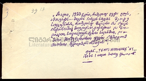 ჟურნ. „Temps Nouveaux" №1 - 1950 წ. 1 იანვრის მოწინავე წერილიდან.